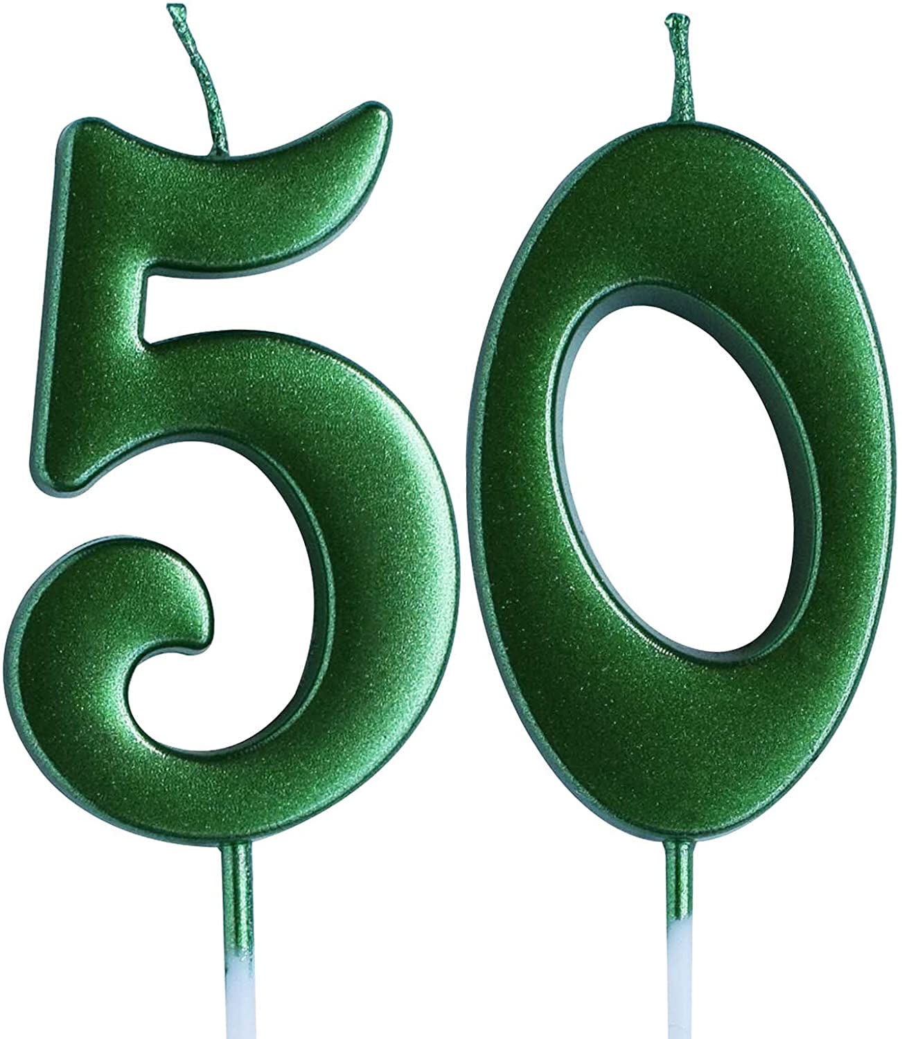 Green 50th Birthday Candle, Number 50 Years Old Candles Cake Topper, Woman Or Man Party Decorations, Supplies