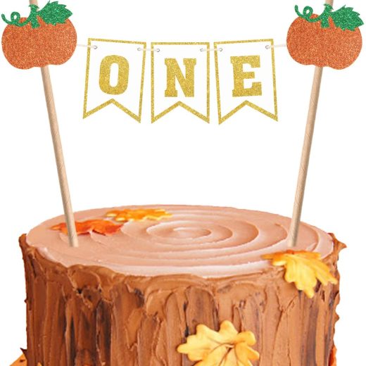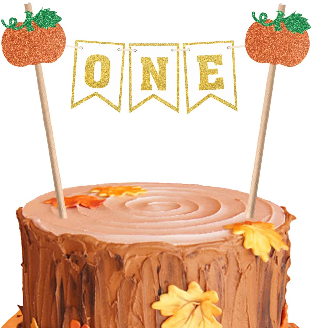 Green Leaf Pumpkin One Cake Bunting, Little Pumpkin 1st Birthday Cake Banner, Fall Birthday Party Decoration, Autumn 1st Anniversary Cake Topper