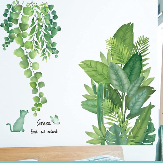 Green Plants Leaf Wall Decal,Palm Tree Leaf Plants Wall Stickers for Living Room Bedroom Kitchen Nursery Home Décor (Multi-cat)