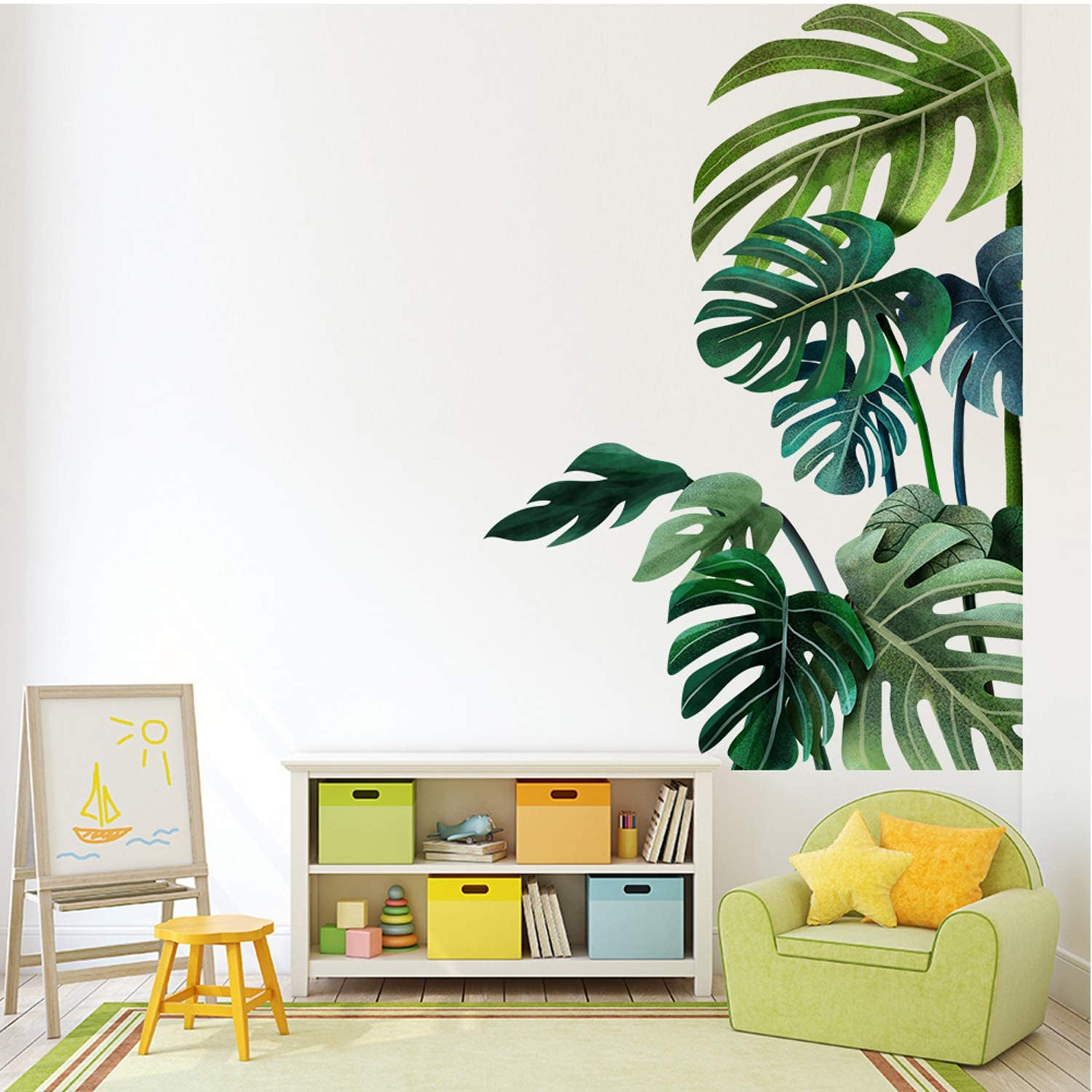 Green Tropical Leaves Wall Stickers Nature Palm Tree Leaf Plants Wall Decal Art Murals for Nursery Kids Baby Bedroom Living Room Classroom Offices Bathroom Home Decoration(Right)