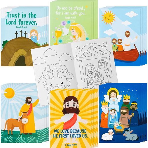 GROBRO7 24Pcs Easter Christian Bible Coloring Books for Kids DIY Art Drawing Book with Angels Priests Churches Candles Crosses Patterns Color Booklets for Sunday School Classroom Rewards Goodie Bag