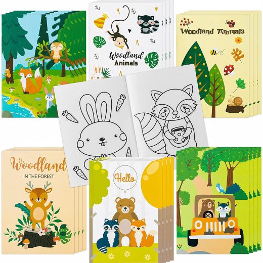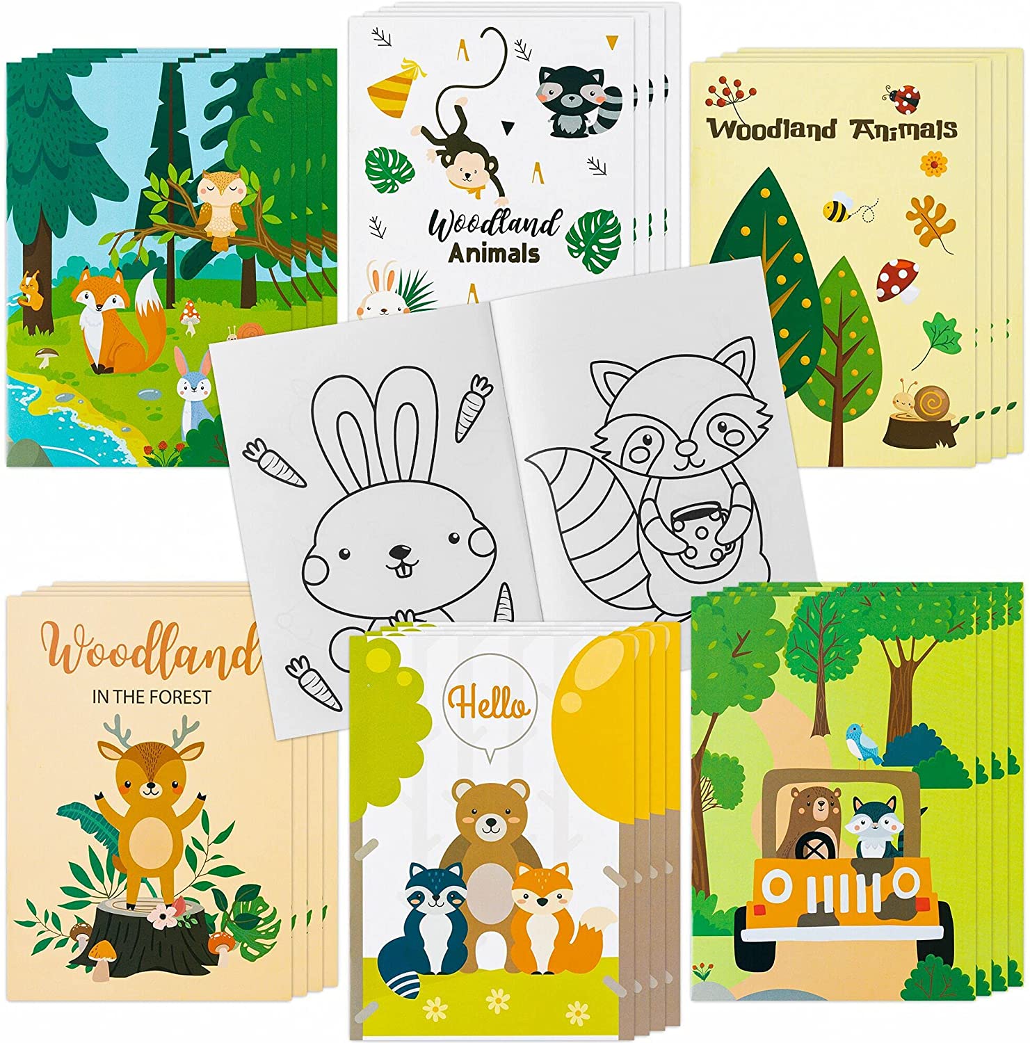 GROBRO7 24Pcs Woodland Animals Coloring Books for Kids DIY Art Drawing Book with Rabbit Monkeys Squirrel Bear Hedgehog Pattern Color Booklets for Toddlers Birthday Party Favors Goodie Bag Filler
