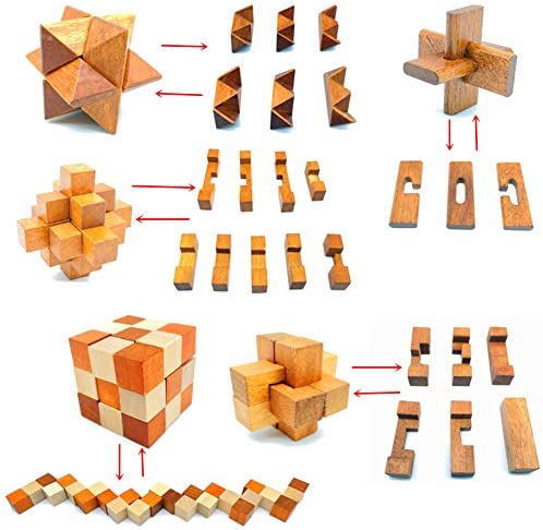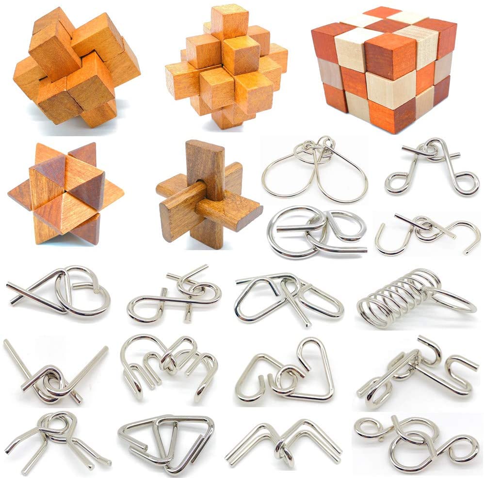 Guaishou Brain Teasers with The Puzzles 21Pcs Unlock Interlock Game IQ Test Toy 3D Wooden and Metal for Party Favor Kids Adults Challenge