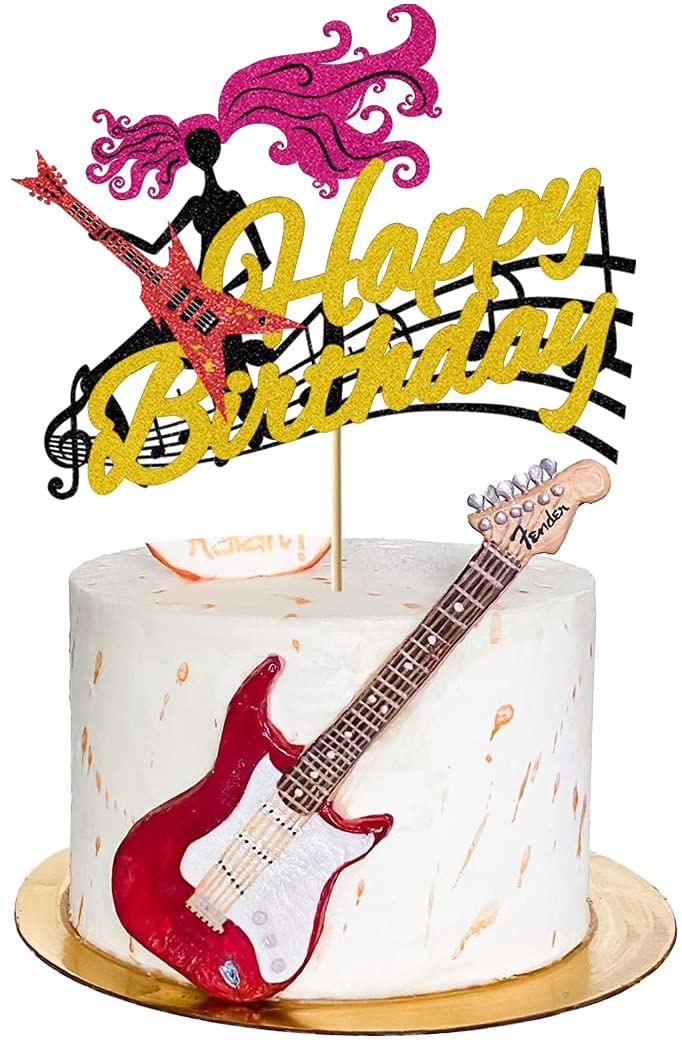 Guitar Cake Topper Rock and Roll Theme cake decorations Sign Musical Notes Player Cake Decorations for Musical Birthday Party Decor Man Boy Girl Birthday Party Supplies