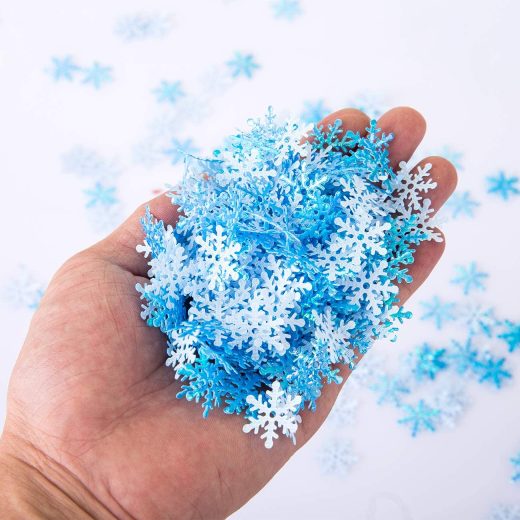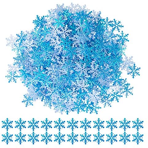 ?PACKAGE?Comes in 600 pcs(approx) of blue snowflake confetti with iridescent finish, enough for big party ?MATERIAL?Made of polyester, reusable and waterproof, suitable for indoor and outdoor decoration ?SIZE?Size of 0.79 x 0.67 inch, perfect show of winter season and parties ?APPLICATIONS?Perfect for decorating Christmas table ,birthday parties, winter weddings, home, gift cards or anywhere you can imagine ?WARRANTY?We offer 100% satisfaction guaranteed and 30 days money back warranty.