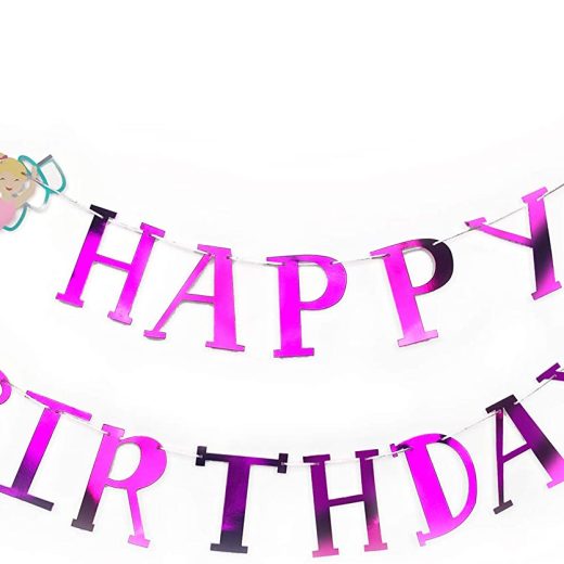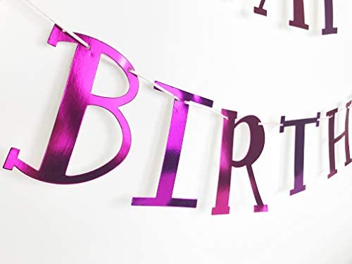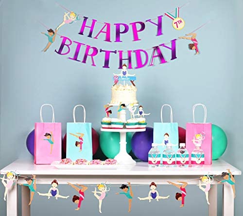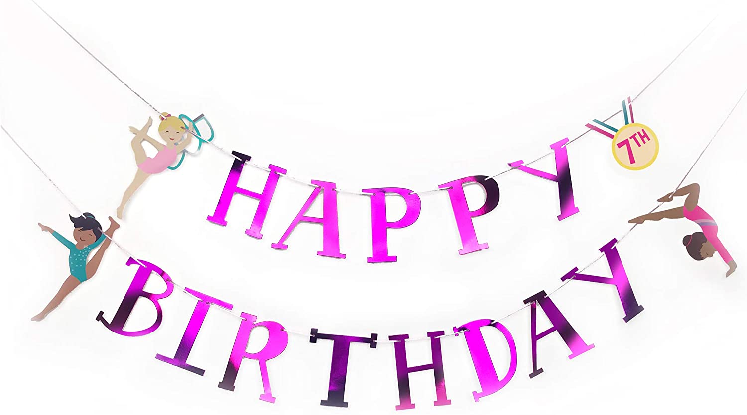 Gymnastics Party – Happy Birthday Banner in Metallic Pink | Gymnast Girls Birthday Banner Decorations | Gymnastics Party Supply