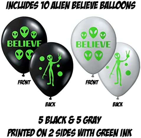 Gypsy Jades Alien Party Balloons – 30 Green, Black and Gray UFO Outer Space Aliens Decorations