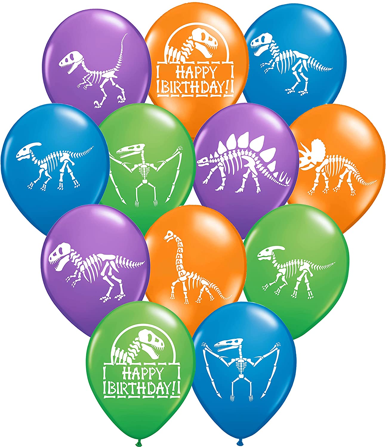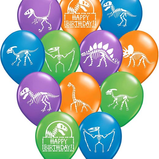 LOTS OF FUN – THIRTY TWO (32) Big Fossil Dinosaur Latex Balloons per package! DINO SIZED – Kit Includes 30 Large 12 Balloons! COLORFUL VARIETY – POPULAR DINOSAUR PARTY COLORS! Balloons are Orange, Green, Blue and Purple. T-REX, VELOCIRAPTOR, STEGOSAURUS, TRICERATOPS, OH MY! Please note these balloons ship uninflated!