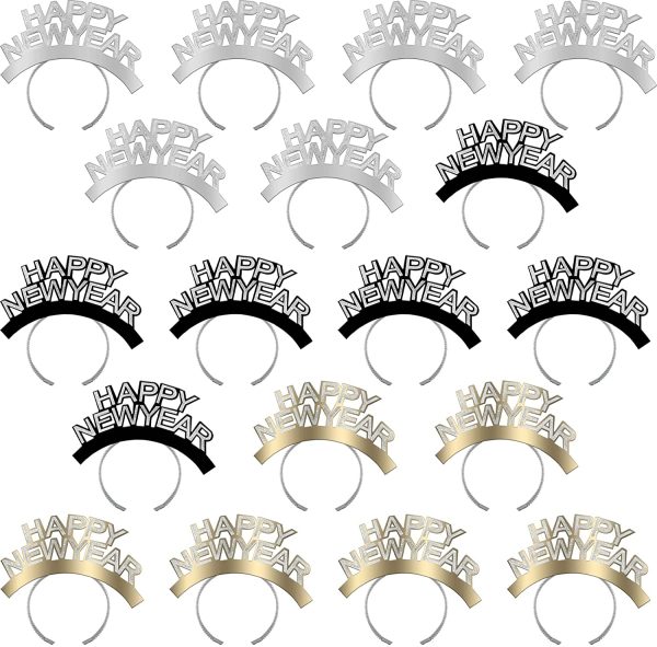 Haconba 18 Pack HAPPY NEW YEAR Headband Glitter Tiara Head Hoop for New Years Eve Gift Party Favors Photo Prop, 3 Colors Wide application: the happ…