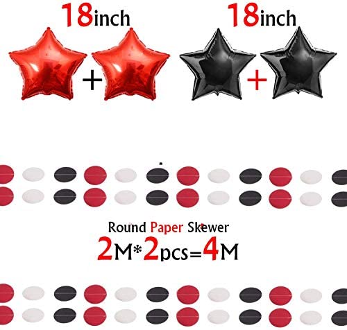 Package Includes: 1 set HAPPY BIRTHDAY banner balloons 2pcs red and 2pcs black foil star balloons, 6pcs red and 6pcs black latex balloons, 9pcs con…