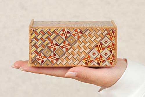 Hakone Yosegi 4 Sun 10 Steps Sun is a Japanese unit of length. 4 sun is about 5 inches. Made in Japan Handmade by Japanese Yosegi craftsmen. The art of craftsmanship which originated in late medieval Japan. (The art of craftsmanship which originated in the Edo period in Japan). For locking up small gifts or valuables such as jewelry, cash and collectible coins. Our wooden box puzzles are an ingenious way to conceal your treasures. These secret opening boxes save money, hide jewelry, or any small keepsake in an elegant way. Here is the trick to opening the box. You need to follow the appropriate procedure in order to open the box. If you take a good look at it, you will notice that it has a sliding panel. The box opens when you get the right combination. You need to go through X 10 steps in order to open the trick box. (If you have a hard time opening it, you can always open it by following the instructions in the user manual that comes with the box.) A unique and beautiful gift for the special people in your life Why not give them a Hakone Yosegi box with a gift in it Personalize your gifts for your loved ones. You want to impress them, don’t you Give them a “wow” moment. They might forget what you gave them but they’ll never forget how you made them feel. This humble box adds sparks to your precious time together. (Ring not included) To care for yosegi products, just polish it with a soft, dry cloth and do NOT expose it to excessive sunlight, moisture or heat. If you find it too easy, try a box that requires more steps to follow. Enjoy playing with puzzle boxes together with your family, relax and improve your problem-solving skills!