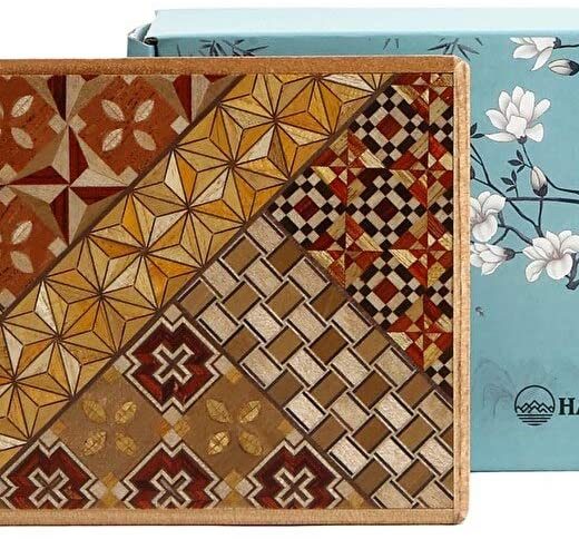 Hakone Yosegi 10 Steps, Japanese Decorative Box, Wooden Puzzle Box, Brain-Teaser Box, prepaid Debit Cards, Secret Box, Hidden compartments for Children and Adults, with Gift Box (5in, Sakura Package)
