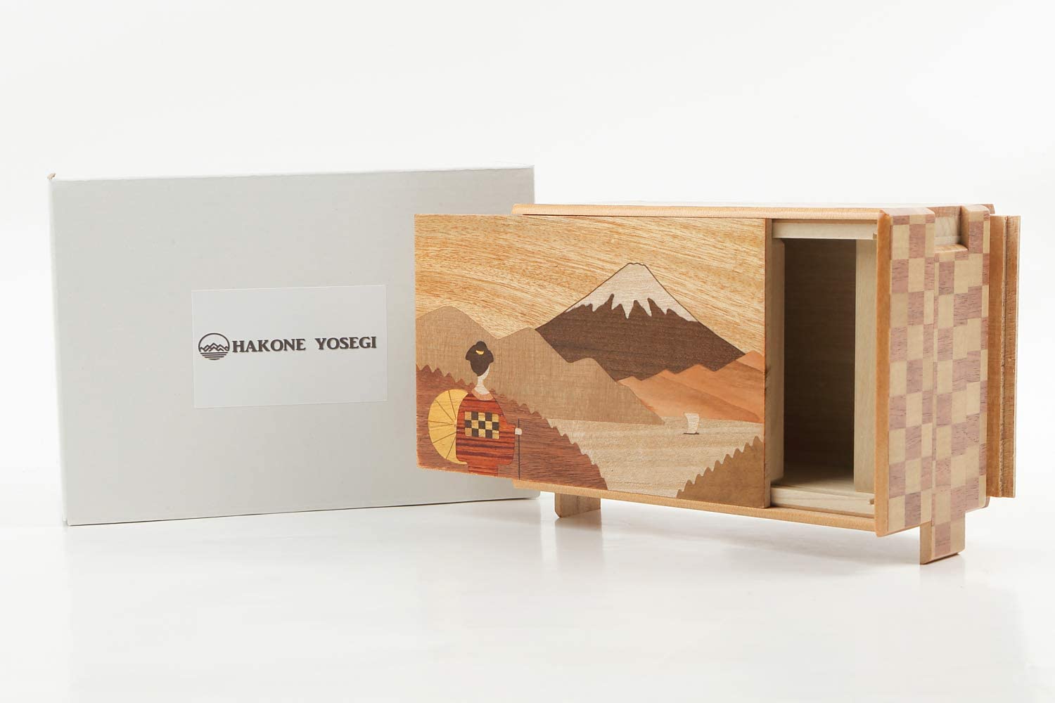 Hakone Yosegi 5 Sun 21 Steps Sun is a Japanese unit of length. 5 sun is about 6 inches. Made in Japan Handmade by Japanese Yosegi craftsmen. The art of craftsmanship which originated in late medieval Japan. (The art of craftsmanship which originated in the Edo period in Japan). For locking up small gifts or valuables such as jewelry, cash and collectible coins. Our wooden box puzzles are an ingenious way to conceal your treasures. These secret opening boxes save money, hide jewelry, or any small keepsake in an elegant way. Here is the trick to opening the box. You need to follow the appropriate procedure in order to open the box. If you take a good look at it, you will notice that it has a sliding panel. The box opens when you get the right combination. You need to go through X 21 steps in order to open the trick box. (If you have a hard time opening it, you can always open it by following the instructions in the user manual that comes with the box.) A unique and beautiful gift for the special people in your life Why not give them a Hakone Yosegi box with a gift in it Personalize your gifts for your loved ones. You want to impress them, don’t you Give them a “wow” moment. They might forget what you gave them but they’ll never forget how you made them feel. This humble box adds sparks to your precious time together. (Ring not included) To care for yosegi products, just polish it with a soft, dry cloth and do NOT expose it to excessive sunlight, moisture or heat. If you find it too easy, try a box that requires more steps to follow. Enjoy playing with puzzle boxes together with your family, relax and improve your problem-solving skills!