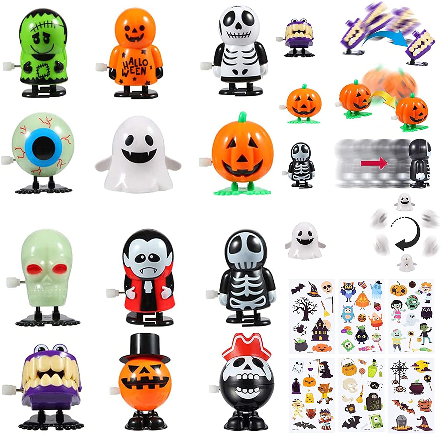 Halloween 12 Pcs Wind Up Toys and 6 Pack Temporary Tattoo Stickers, Assorted Goody Bag Filler, Clockwork Toys Supply for Holiday Party Favors, Birthday Gifts