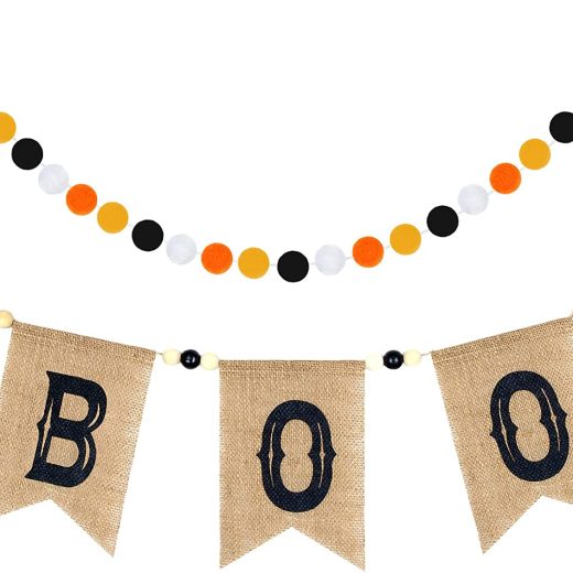 No DIY required: the Halloween garland decorations come pre-assembled and ready to hang, convenient to decorate and save your time; You can hang them to anywhere you want Halloween banner: package includes 1 piece burlap BOO banner, 1 piece colorful wool felt ball garland, suitable for Halloween party decoration; Place them on the fireplace, mantle, doorway, entrance, porch, etc.; They also can be hung outdoor since, durable to last through storms and wind Proper size: the burlap banner is 2.6 meters/ 8.5 ft in length, each burlap flag is 5 x 7 inch (W x L); The wool felt garland is 2 m/ 6.6 ft, each ball is 0.8 inches in diameter, 20 balls in total, eye-catching and meaningful Interesting design: the Halloween BOO banner is made of quality burlap, durable and reusable for many times using; Pendants are movable on the string, so you can customize the distance between the flag pieces, and always get them just right Appropriate decorations: nicely serve as Halloween party decoration, suitable for hanging from branches and ceilings, or open against a wall, hanging up dessert tables, backdrops, and the overall party space, the adornment of the integral collocation of color is adding a pop of fun