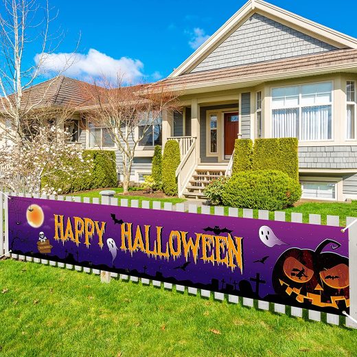 Halloween Decorations, Happy Halloween Banner, Extra Large Fabric Backdrop Halloween Yard Sign Banner Background Halloween Party Decor Sign for Indoor Outdoor Home Garden Supplies 70.8 x 11.8 Inch