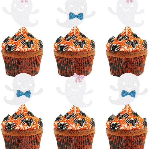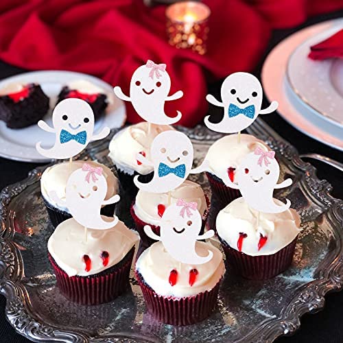 Halloween Ghost Cupcake Toppers, Halloween Ghost Cupcake Food Picks, Halloween Ghost Birthday Party Decorations, Halloween Themed Baby Shower Boys Girls Birthday Party Cake Decorations (24 Pcs)
