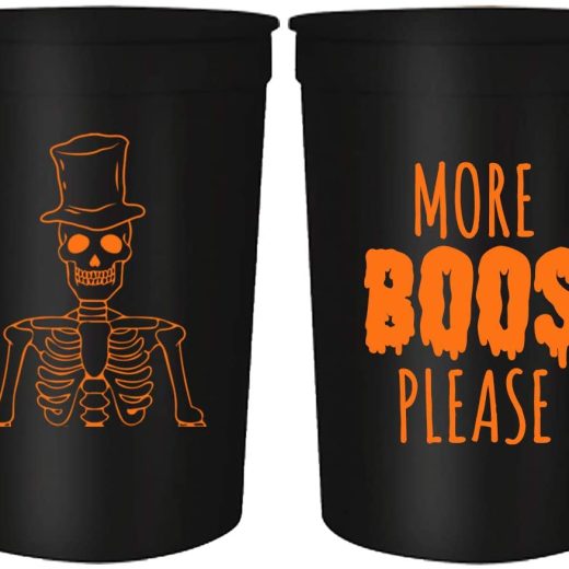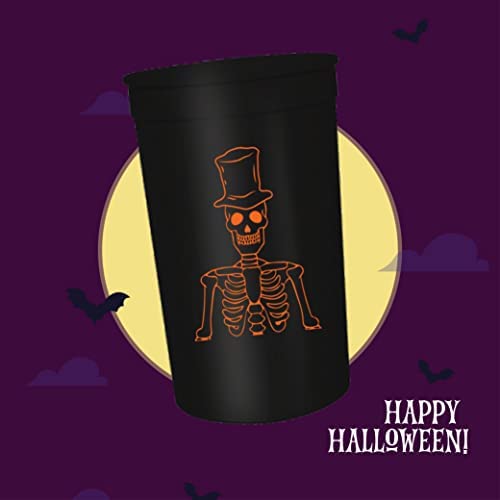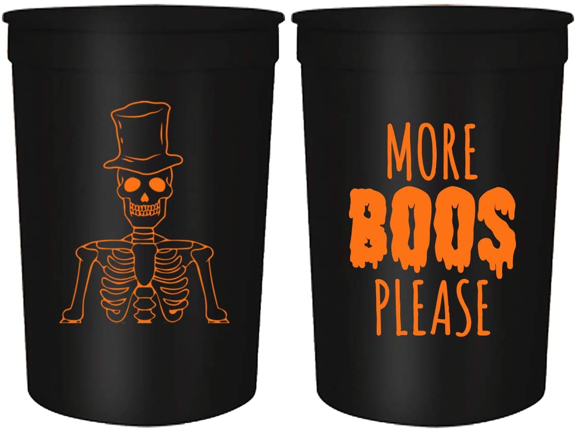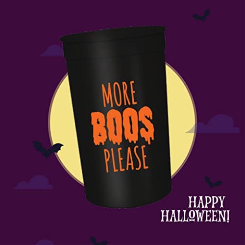 Halloween Party Cups – Set of 12 Orange or White 16oz Stadium Cups, Perfect for a Halloween Party, Halloween Favors, Trick or Treat Supplies (More Boos Black)