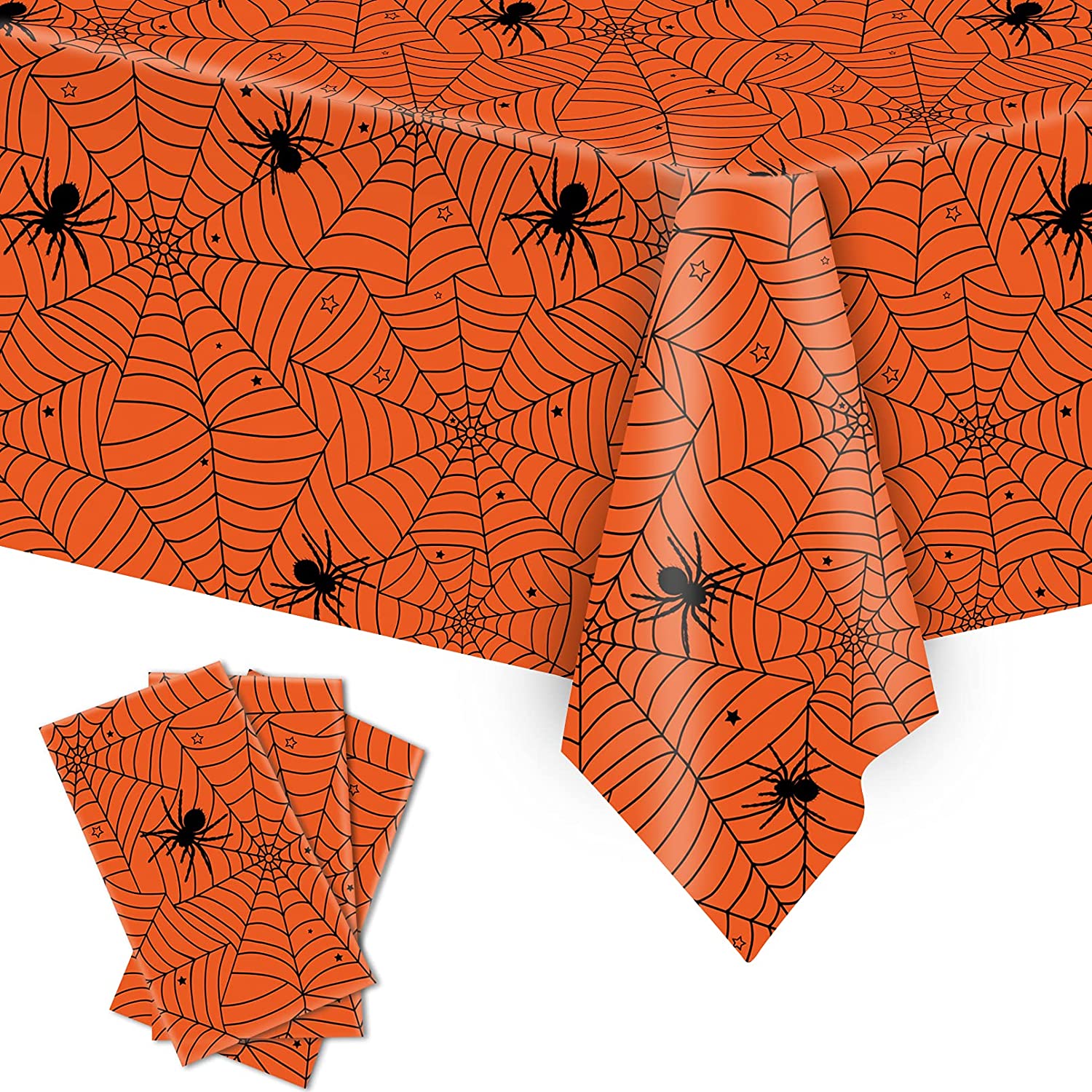 Halloween Tablecloth, 3 Pack Large Size Spider Web Table Cover for Halloween Parties, Scary Plastic Cobweb Table Cloth for Halloween Decorations Indoor Outdoor and Home Dinner, 54×108 inch- Orange