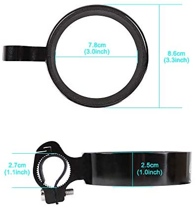 Specifications: Product name:Bike cup bottle holder Material: Aluminum Alloy Color:Black Dimensions: 5”(L) x 3.4”(W) x 1.0”(H) Inside Diameter of Cup Clamp: 3.0 Weight:68g Compatibility: Fits 25mm (1.0) diameter handlebar Installation: Clamp uses 1 hex bolt. Use 5mm or 5/32” hex wrench/key to tighten (not included)