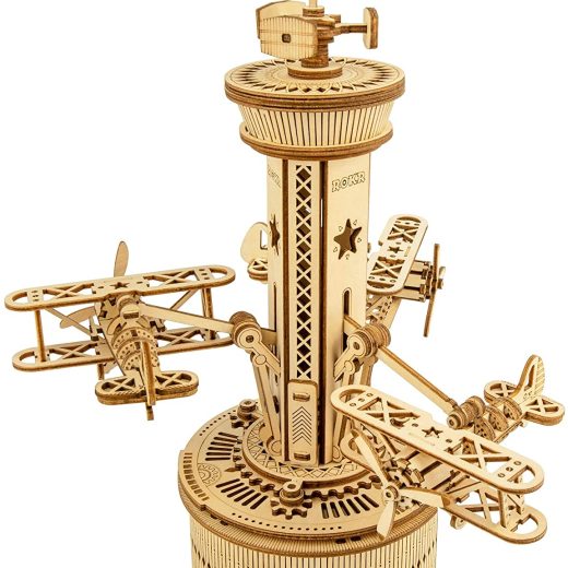 Hands Craft 3D DIY Wooden Puzzle Music Box | DIY Model Kit | Craft Kit Brain Teaser | Gear Driven, Airplane-Control Tower (AMK41)