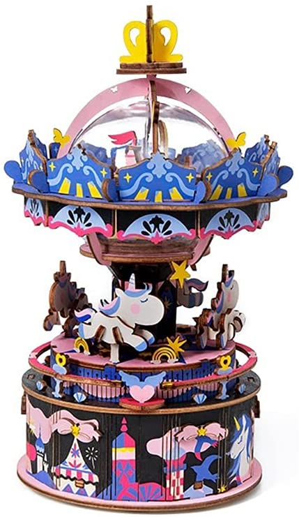 Hands Craft 3D Wooden Puzzle Music Box | DIY Model Kits | Craft Kits Brain Teaser | Merry-Go-Round (AM44)