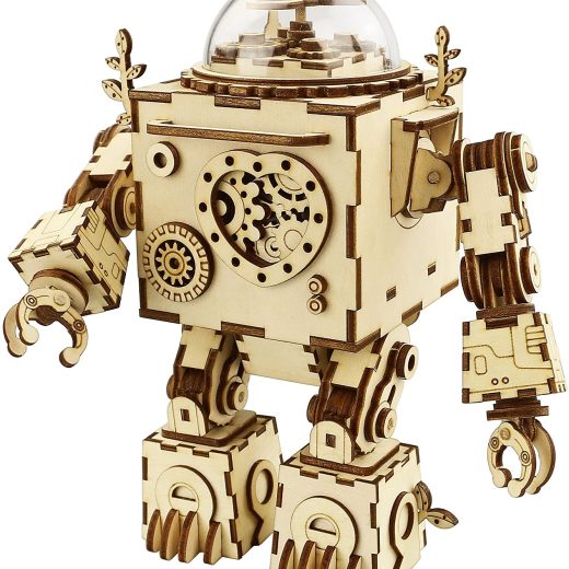 Hands Craft DIY Build Your Own 3D Wooden Puzzle Music Box with Hand Crank Kit (Orpheus Robot)- Plays Tune Cant Take My Eyes Off of You, Educational STEM Project Brain Teaser Gift (AM601)