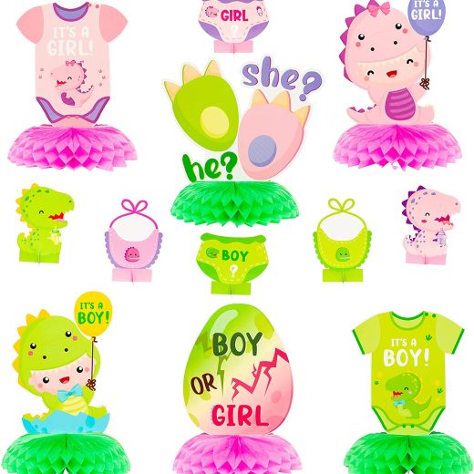 Haooryx 12Pcs Little Dino Gender Reveal Party Honeycomb Centerpieces These green and pink dino theme centerpieces for tables can be placed on the t…