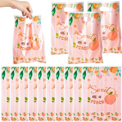 Haooryx 50pcs Sweet As a Peach Party Favor Bags, Plastic Goodie Candy Bag Gift Wrapping Bags Birthday Gift Accessories Treat Bags for Peach Birthday Party Baby Shower Decorations Pack