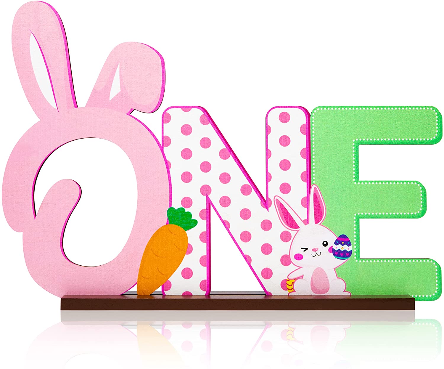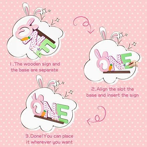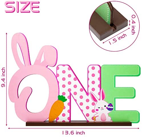Haooryx Easter Bunny One Wooden Table Centerpiece, Some Bunny is One Letter Sign Table Decoration for Girls Pink Bunny First Birthday Easter Day Party Decor Supplies Spring Holiday Rabbit Photo Prop