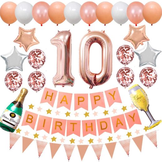 Happy 10th Birthday Party Decorations Rose Gold Latex and Confetti Balloons Happy Birthday Banner Foil Number Balloons and More For 10 Years Old Birthday Party Supplies (colorpartyland)