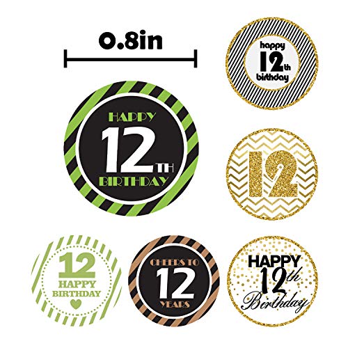 Happy 12th Birthday Stickers For 12 Years Old Party Decoration – Birthday Favor Labels -240 Count