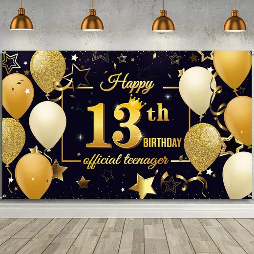 Be the first to review “Happy 13th Birthday Backdrop Banner 13 Years Old Birthday Party Banner Black and Gold Official Teenager Background Banner Birthday Party Photo Booth Banner for Birthday Party Favor, 72.8 x 43.3 Inch” Cancel reply