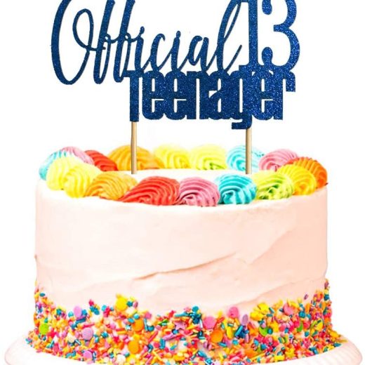 Happy 13th Birthday Cake Topper, Boys Girls Teen Birthday Party Supplies, Cheers to 13 Years Teenager Birthday Party Decorations, Blue Glitter