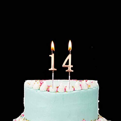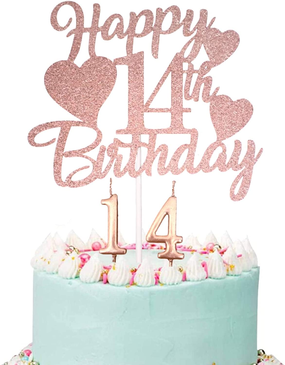 Happy 14th Birthday Cake Topper, Rose Gold 14th Birthday Cake Topper, 14th Birthday Cake Topper with Number 14 Candles for Girl 14th Birthday Party Decorations