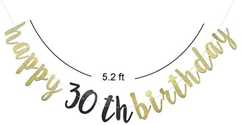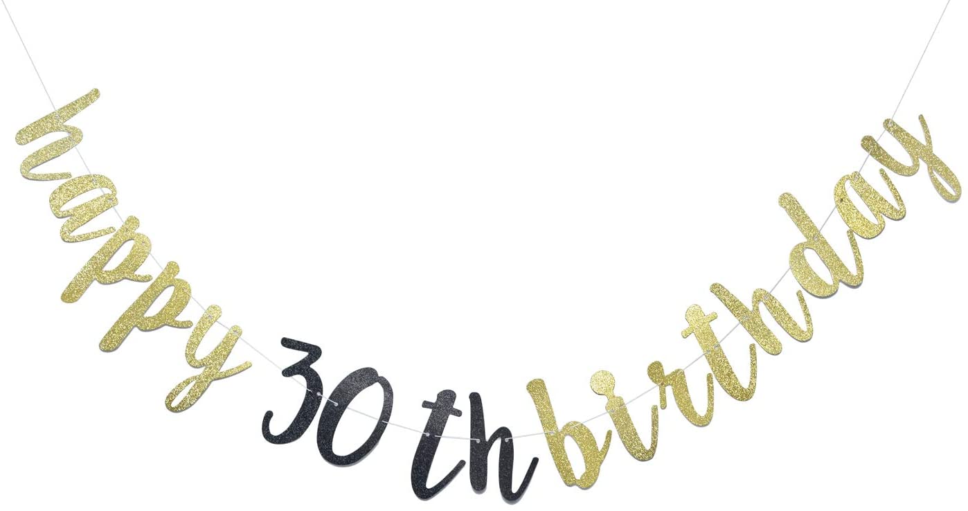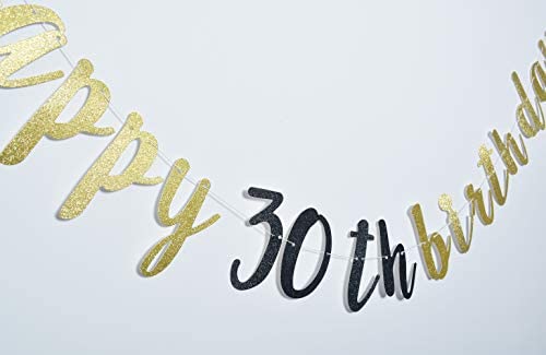 Happy 30th Birthday Banner Pre-Strung for 30th Birthday Party Decorations (Gold & Black Glitter)