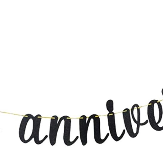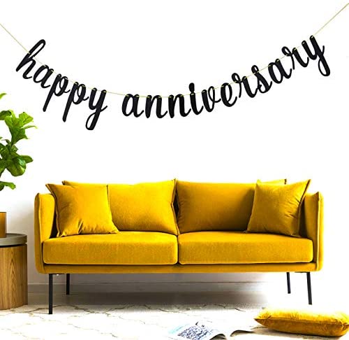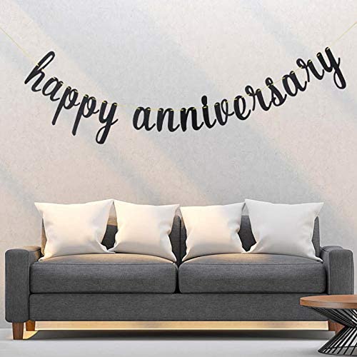 Happy Anniversary Banner for Birthday/Wedding Anniversary Happy Birthday Banner Party Decoration Supplies(Black Glitter)