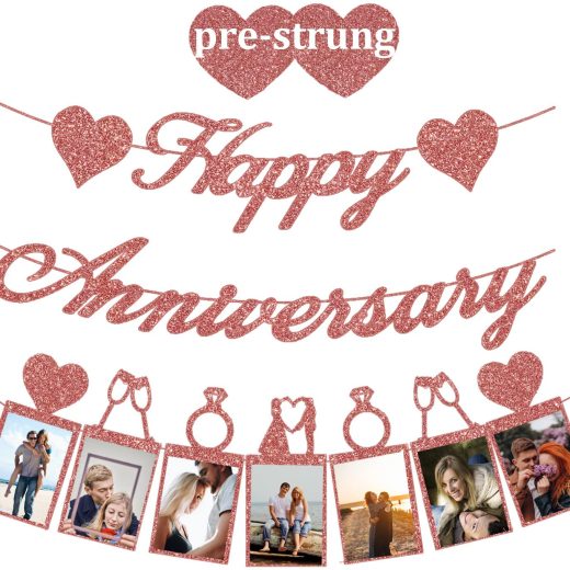 Awesome Wedding Anniversary Decorations Kit-1pc Happy Anniversary Banner, and 1pc Photo Banner. Enough quantity and nice decoration for assisting you to prepare an unforgettable and joyful party. No DIY Needed – No assembly required! All the banners have been pre-assembled and ready to hang, just open the package and hang it on anywhere you want! Really save your time and energy. No More Falling Pictures During the Party-The photo comes with photo insertion frames that will make your preparation simple and quick! Simply slide in the 4R photo (4×6) to the frame and youre ready to show the beautiful banner with the cutest photos to your friends and family. (Others are giving glue to attach) Premium Material- All the banners are made by ECO-friendly glitter cardstock, which is not easy to curl or break. Long lasting decor. Sturdy and will not sprinkle on the food. 365 DAY AFTER-SALE SERVICE: Our #1 priority is bring happiness to our guest! If you have any quality problems with our products, please contact us!