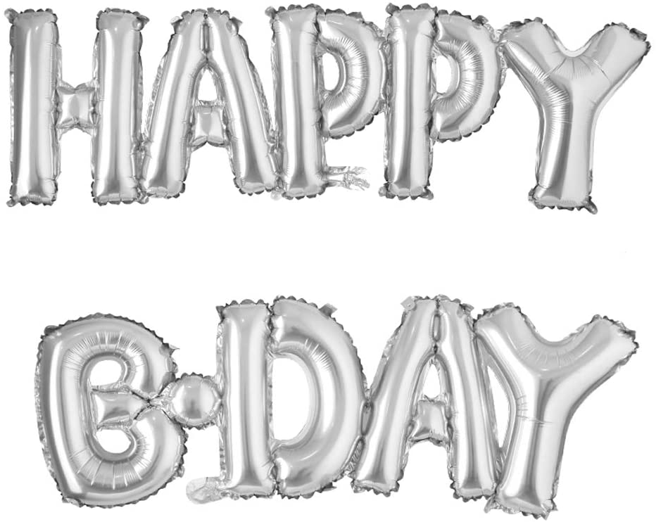Happy Bday Connection Letter foil Balloons Birthday Party Decorations Kids Party Decoration Balloons air Balloons Baby Shower (Happy Bday Silver)