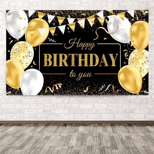 Happy birthday to you! Exclusively designed black and gold themed backdrop, will accompany your for a unique birthday party. High-quality MaterialM…