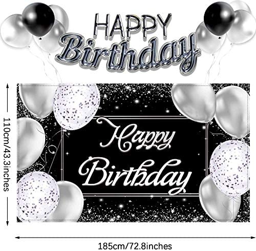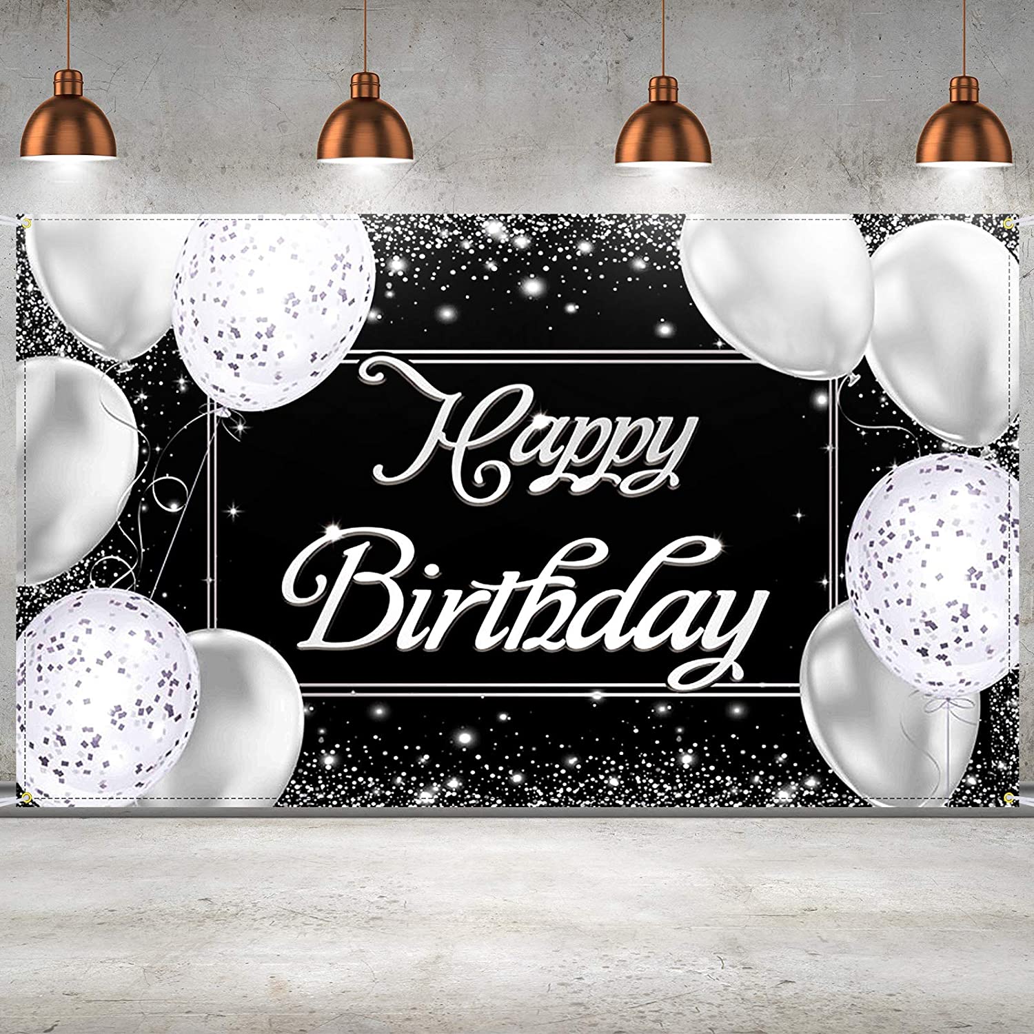 Happy Birthday Backdrop Banner Black and Silver Photography Background Happy Birthday Banner Large Birthday Party Sign Poster Photography Backdrop Party Decoration Supplies for Men and Women