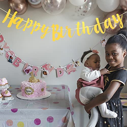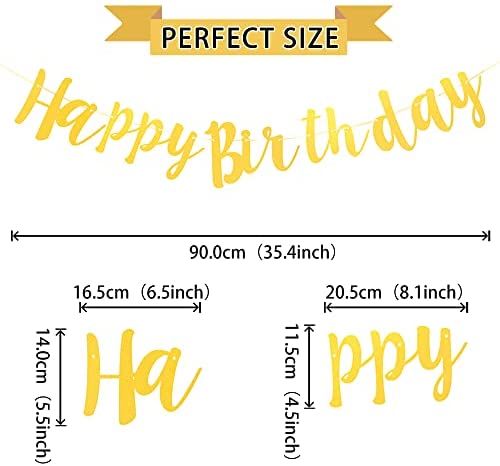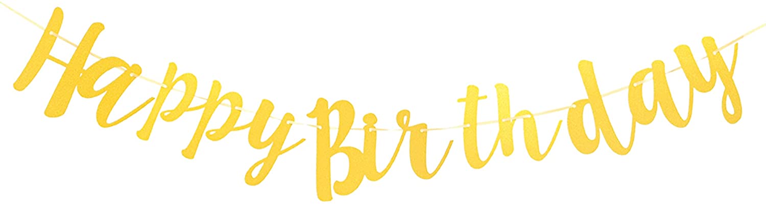 Happy Birthday Banner Glitter Happy Birthday Garland Banner Birthday Party Sign Decorations Supplies Gold 3.5 Feet Rope