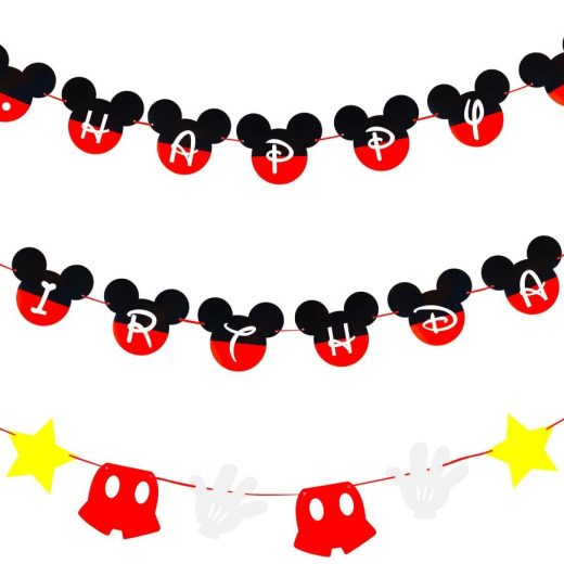 Happy Birthday Banner Party Favors Supplies for Kids Birthday Mickey Theme Party Decorations