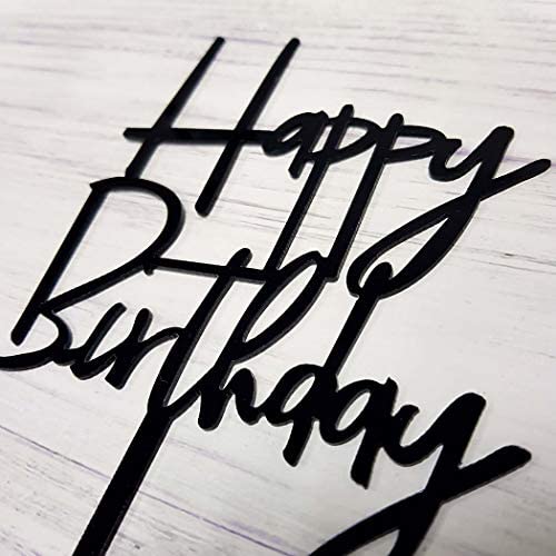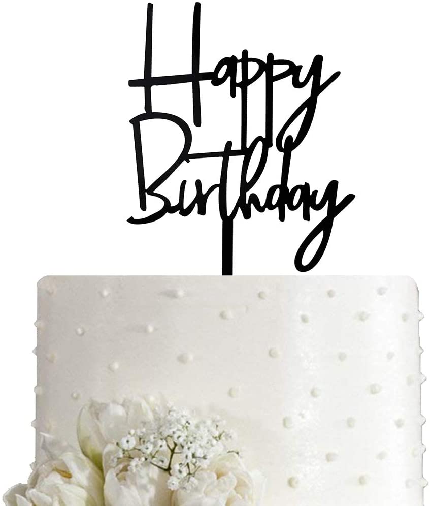 Happy Birthday Cake Topper for Birthday Party Decorations (Black Acrylic).