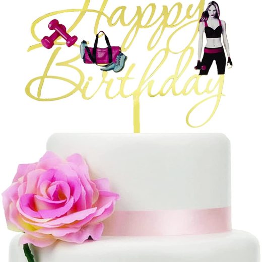 Material: This fitness lady birthday cake topper is made of Mirrorgold acrylic. Size:This Mirror gold happy birthday cake topper is approx 6.1 wide…