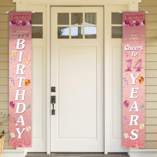 Happy Birthday Cheers to 14 Years Pink Yard Sign Door Banner 14th Birthday Decorations Party Supplies