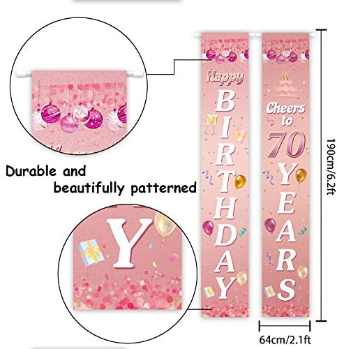 Happy Birthday Cheers to 70 Years Pink Yard Sign Door Banner 70th Birthday Decorations Party Supplies