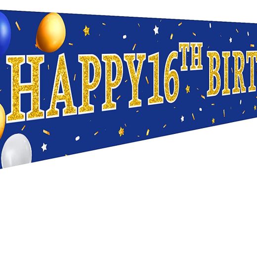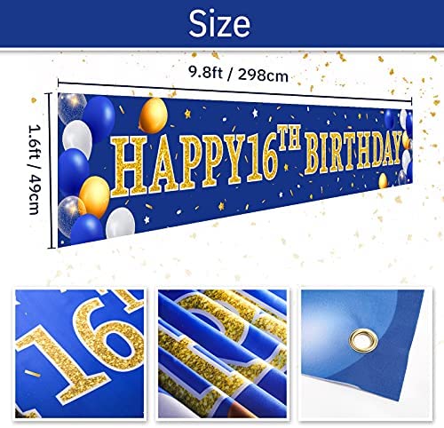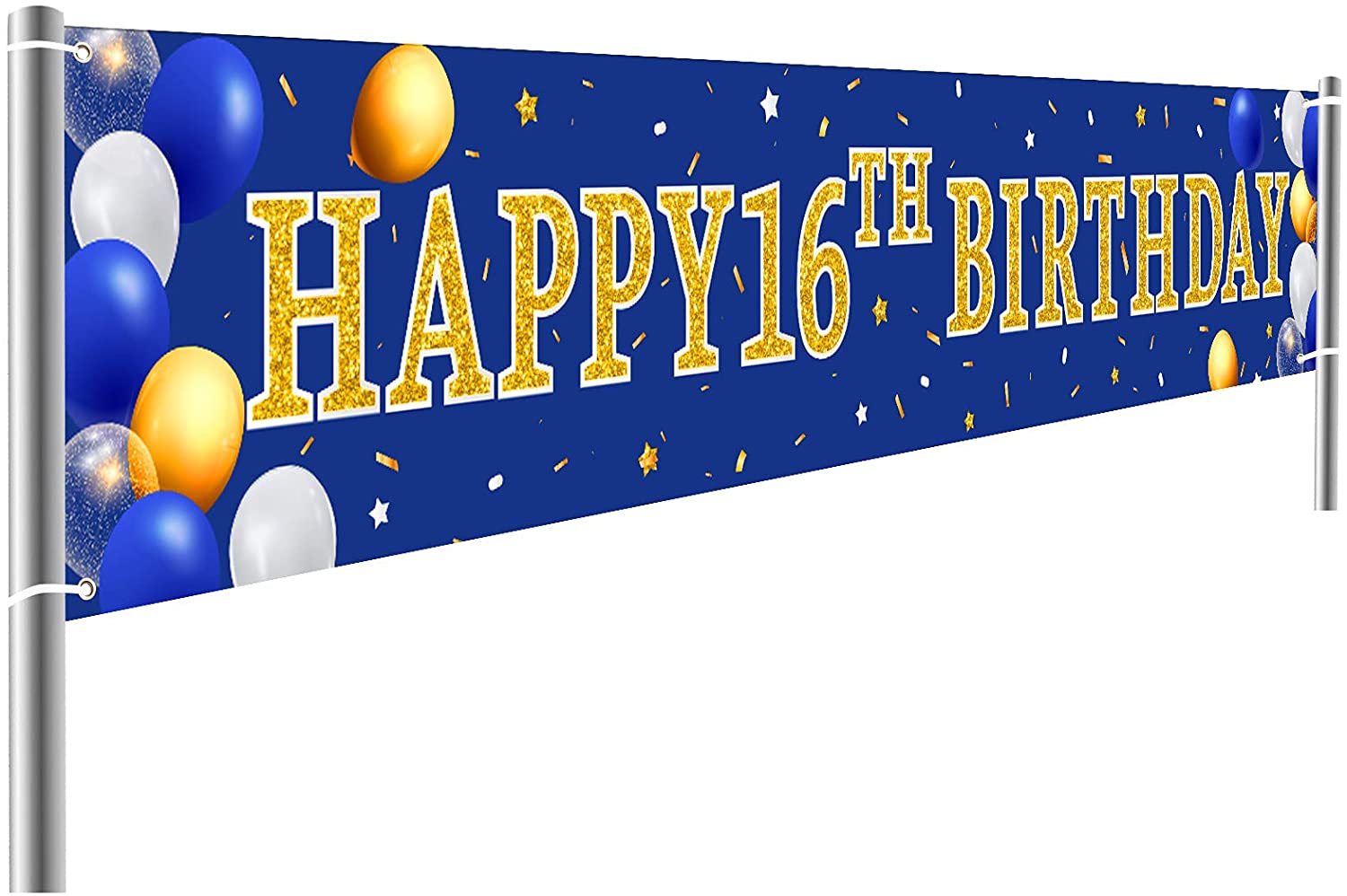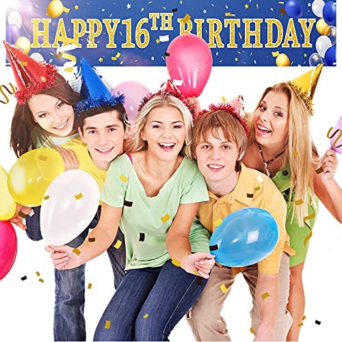 Happy Birthday Decoration Banner, Navy Blue and Gold Birthday Yard Banner Backdrop, 16th 18th 50th Birthday Party Supplies Decorations for Men (16th)