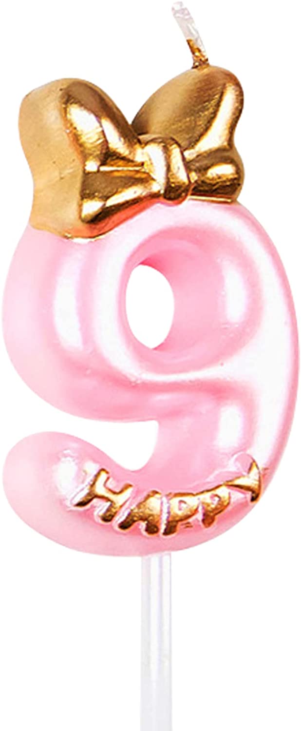 Happy Birthday Number Candle Birthday Pink Number 0-9 Cake Candle Decoration Cute Cake Supplies (Number 9)