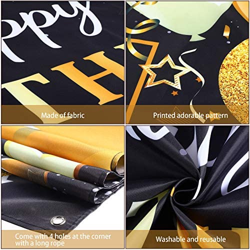 What you get: comes with a happy birthday to you sign backdrop, designed with vibrant black and gold color, printed with shinning balloons and stars, adding an impressive beauty to the grand birthday party, which is an essential decoration to create memorable happy birthday party atmosphere Large size: this happy birthday backdrop measures 180 x 110 cm/ 70.8 x 43.3 inch, large enough for the happy birthday party decorations and for photography at your party with friends, added an extra touch to your birthday party favor Durable material: made of durable polyester fabric, lightweight; The birthday wall backdrop can be folded and easy to carry, washable and tear-resistant, suitable for your birthday party and 30th 40th 50th 60th anniversary party decorations Easy to use: comes with 1 large section of happy birthday banner background, along with approx. 20 feet/ 6 m rope, easy to hang through the copper grommet; Suitable for indoor or outdoor wall, playground, etc. Wide applications: elegant designed with black and gold birthday party elements, our Happy Birthday To You sign backdrop can be wonderful birthday party supplies, also you can write some words on it, makes your birthday party an impressive event